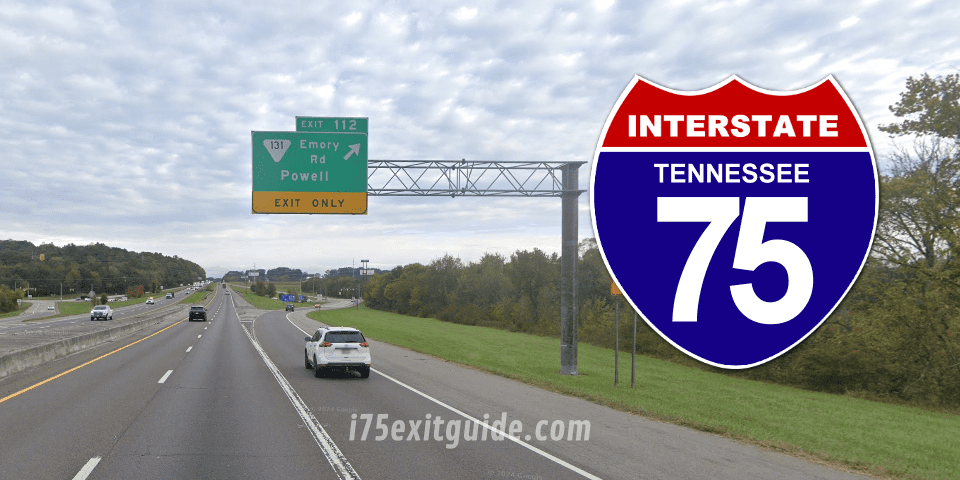 KNOX COUNTY, I-75 North and South near Exit 112 Emory Road:ย ย Motorists should be alert for shoulder closures in place through this area. Motorists should be alert for possible temporary lane closures nightly between the hours of 7:00 p.m. and 6:00 a.m. the following morning the ramps at this exit as crews perform roadway construction activities on this DDI project. Motorists should be alert for workers present, expect potential delays, and use extreme caution through this area.